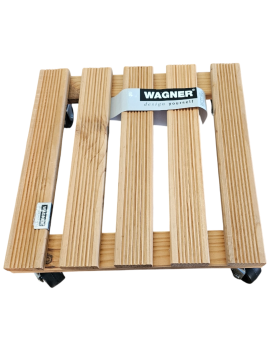 Soporte cuadrado para macetas, de la marca Wagner 5 listones de madera de haya, dentados, con ruedas dobles, ruedas blandas para suelos duros capacidad de carga - 150 kg